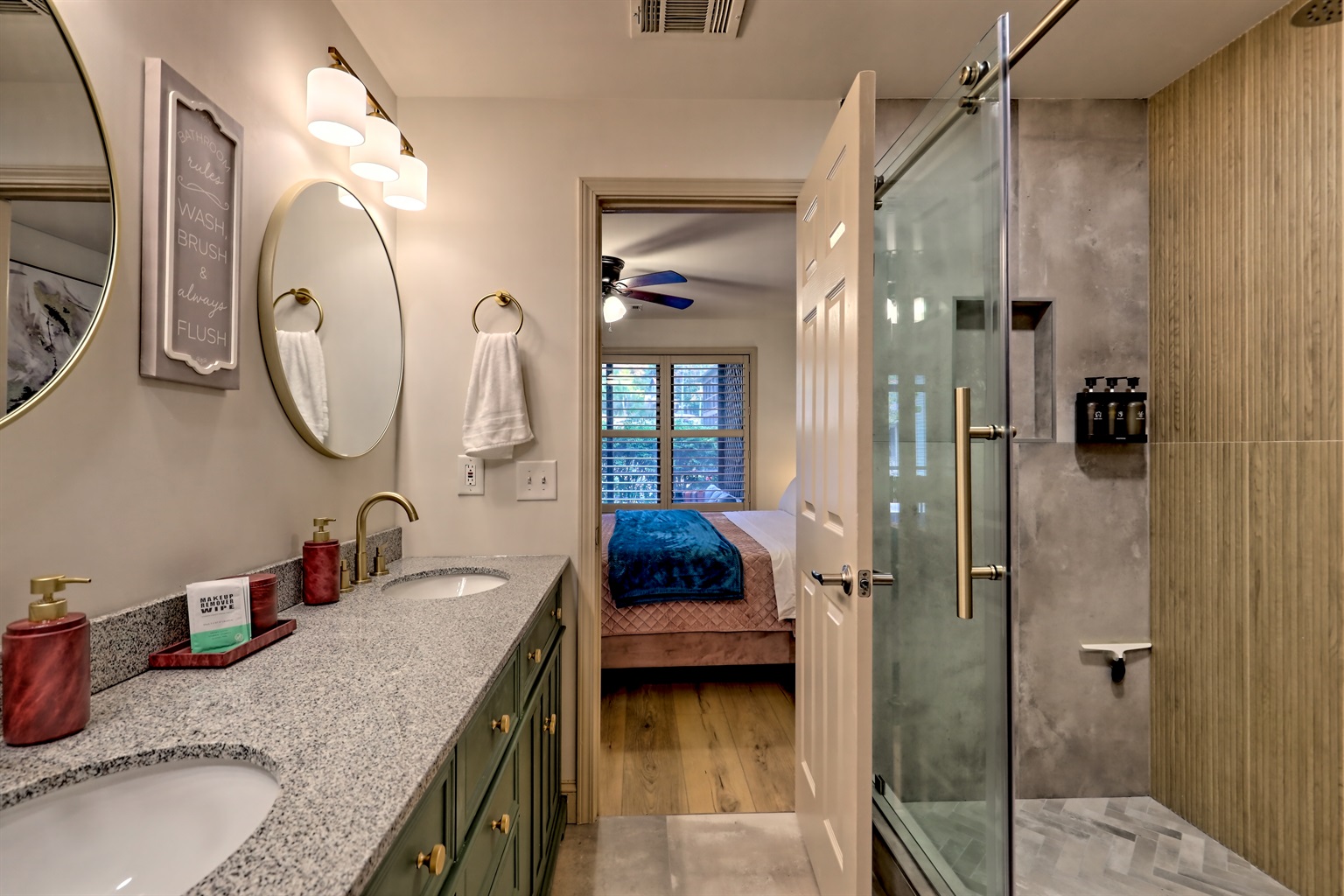 2 Bedrooms • 2 Bathrooms 2 Baths • Sleeps 1-6Experience the charm of Alpine Helen from this newly renovated 2-bedroom, 1st-floor condo that sleeps up to 6 guests. Located just a 4-minute walk from Main Square, this stylish retreat blends comfort, convenience, and upscale design.