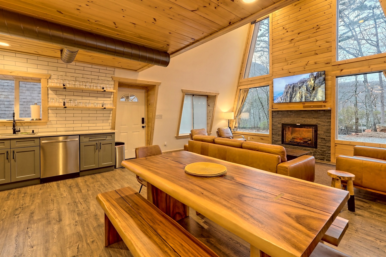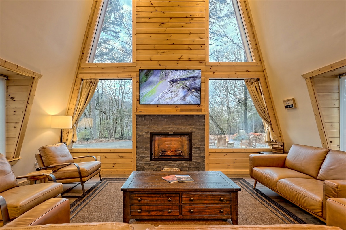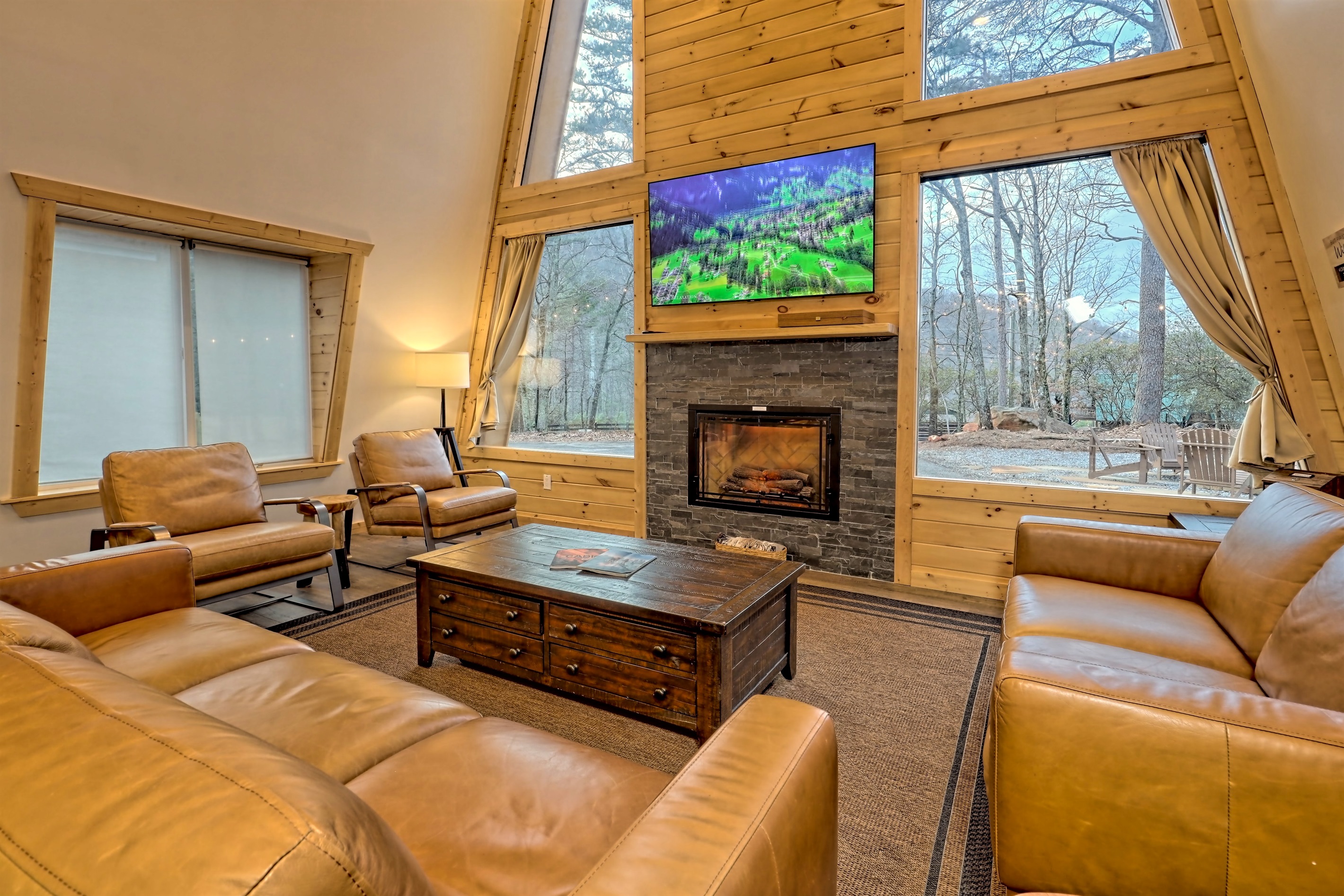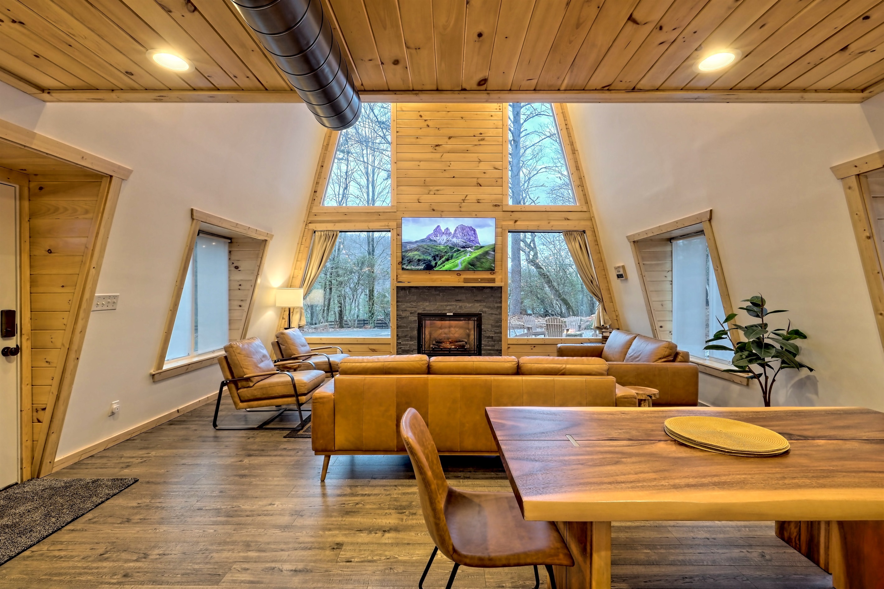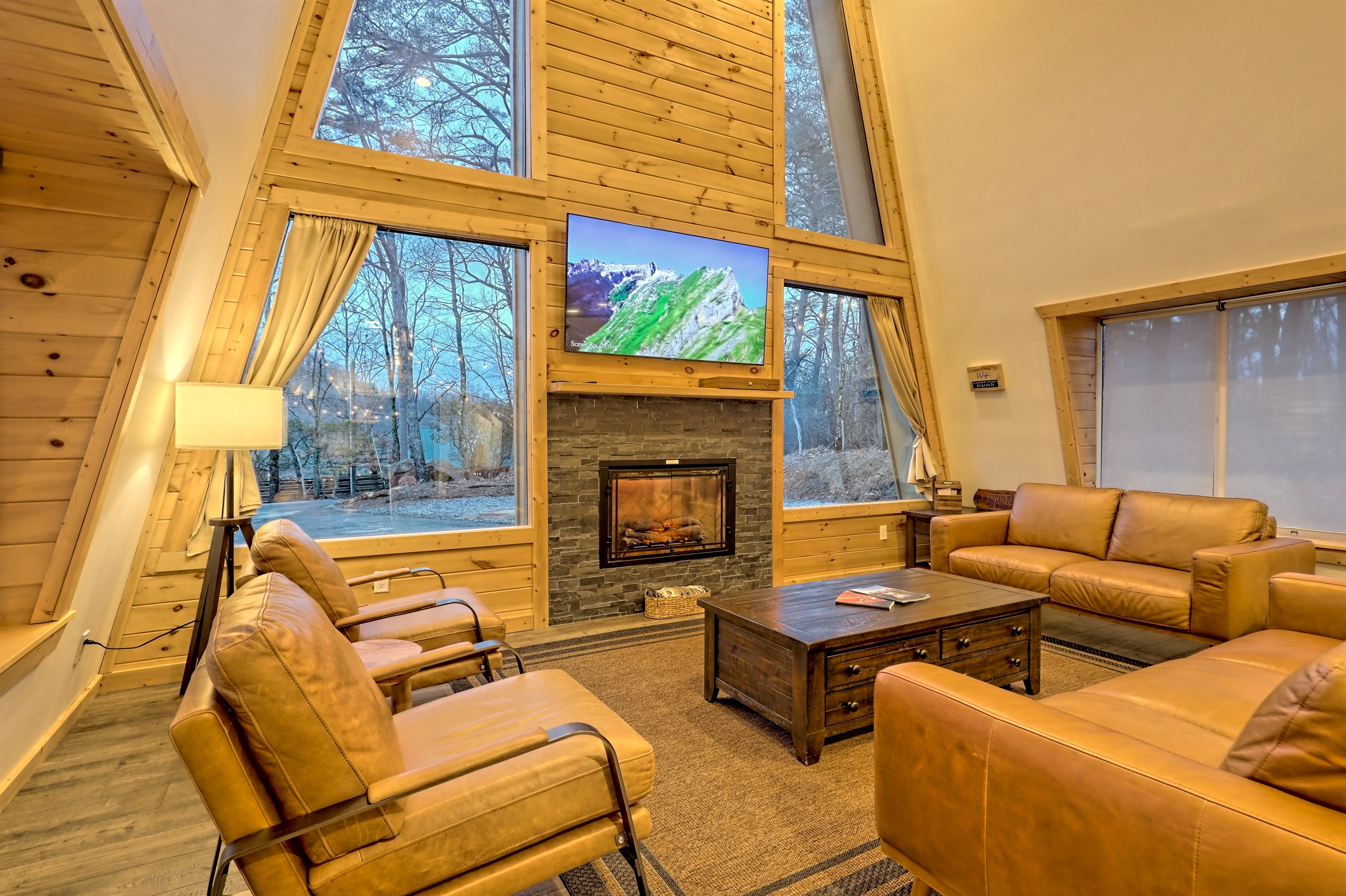 Experience the ultimate mountain getaway in our upscale A-frame cabin, where luxury amenities and natural beauty combine to create an unforgettable retreat.