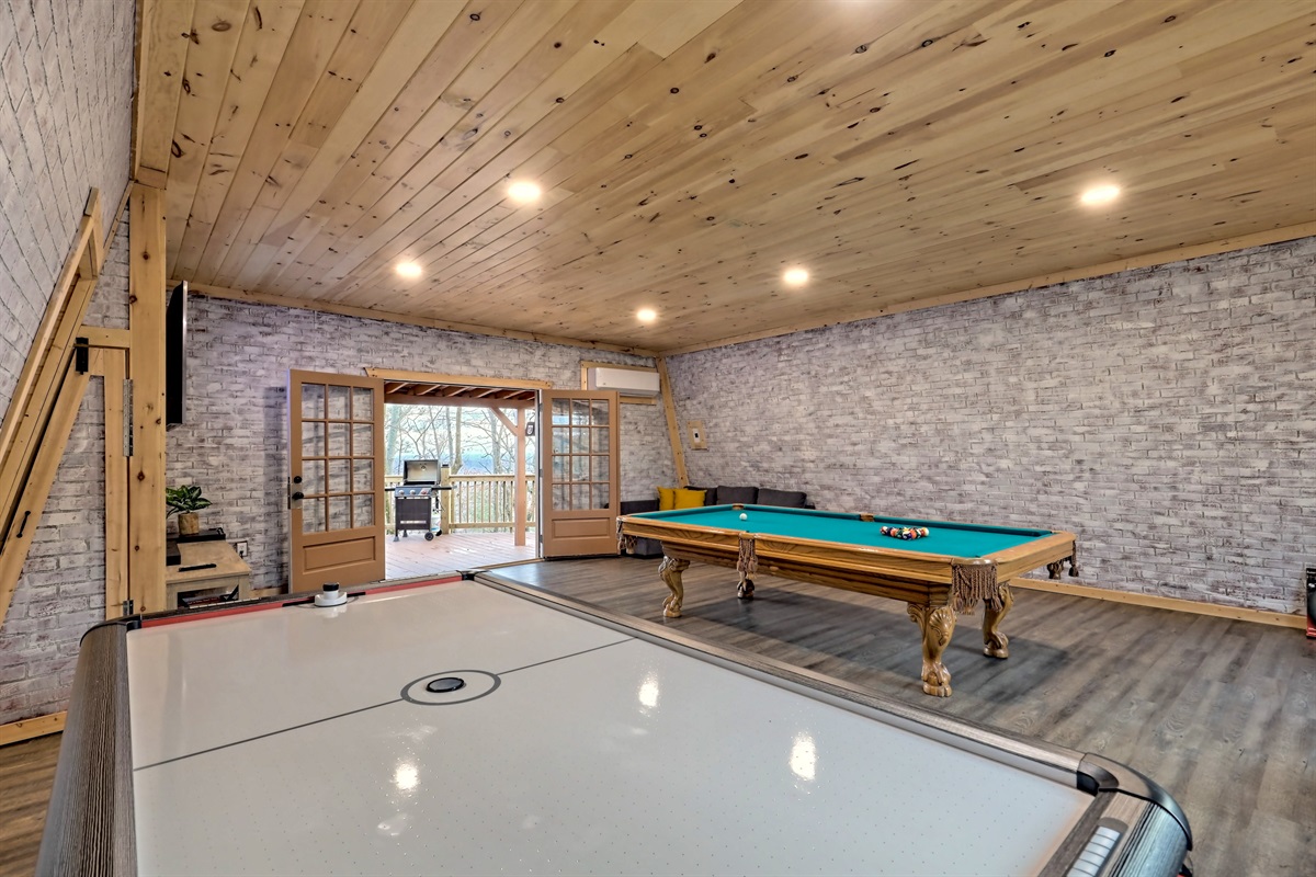 * Game room with pool table, air hockey, board games, darts, arcade games, and Xbox